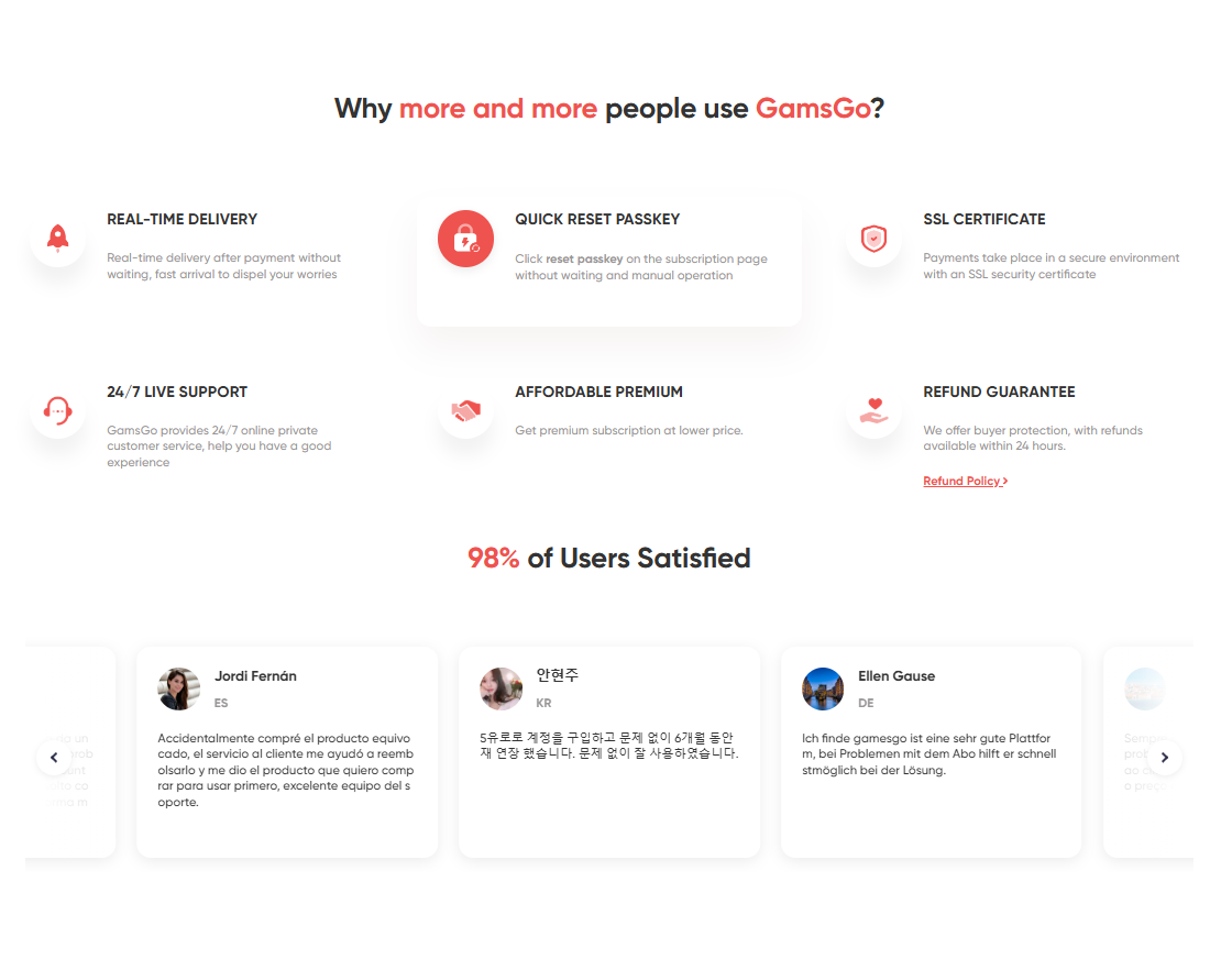 To enhance trust and credibility, GamsGo offers a money-back guarantee in case the service does not work as promised.
